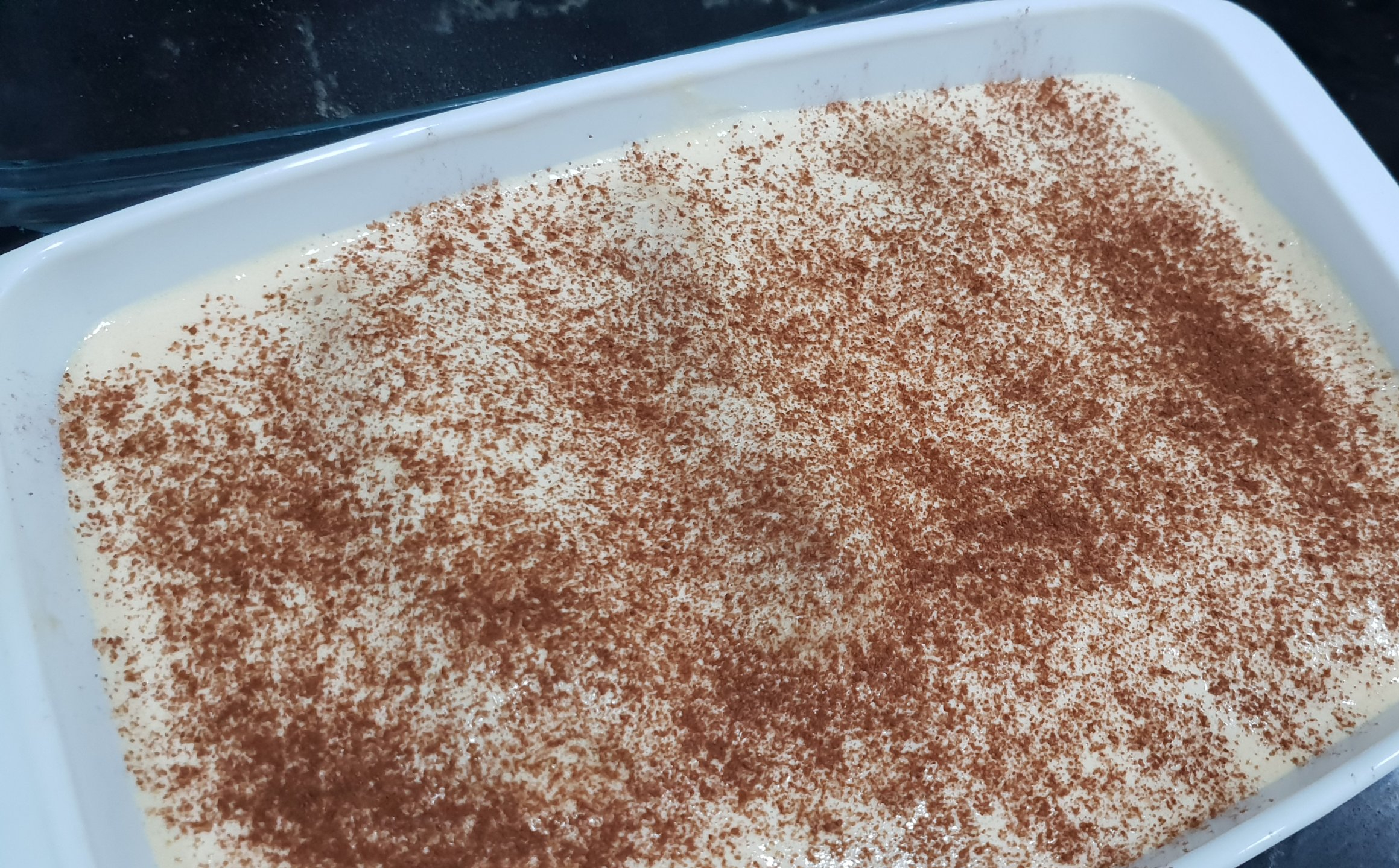 Une rangée de boudoirs , une de crème etc…et vous terminez avec une touche de poudre de cacao sur le dessus.