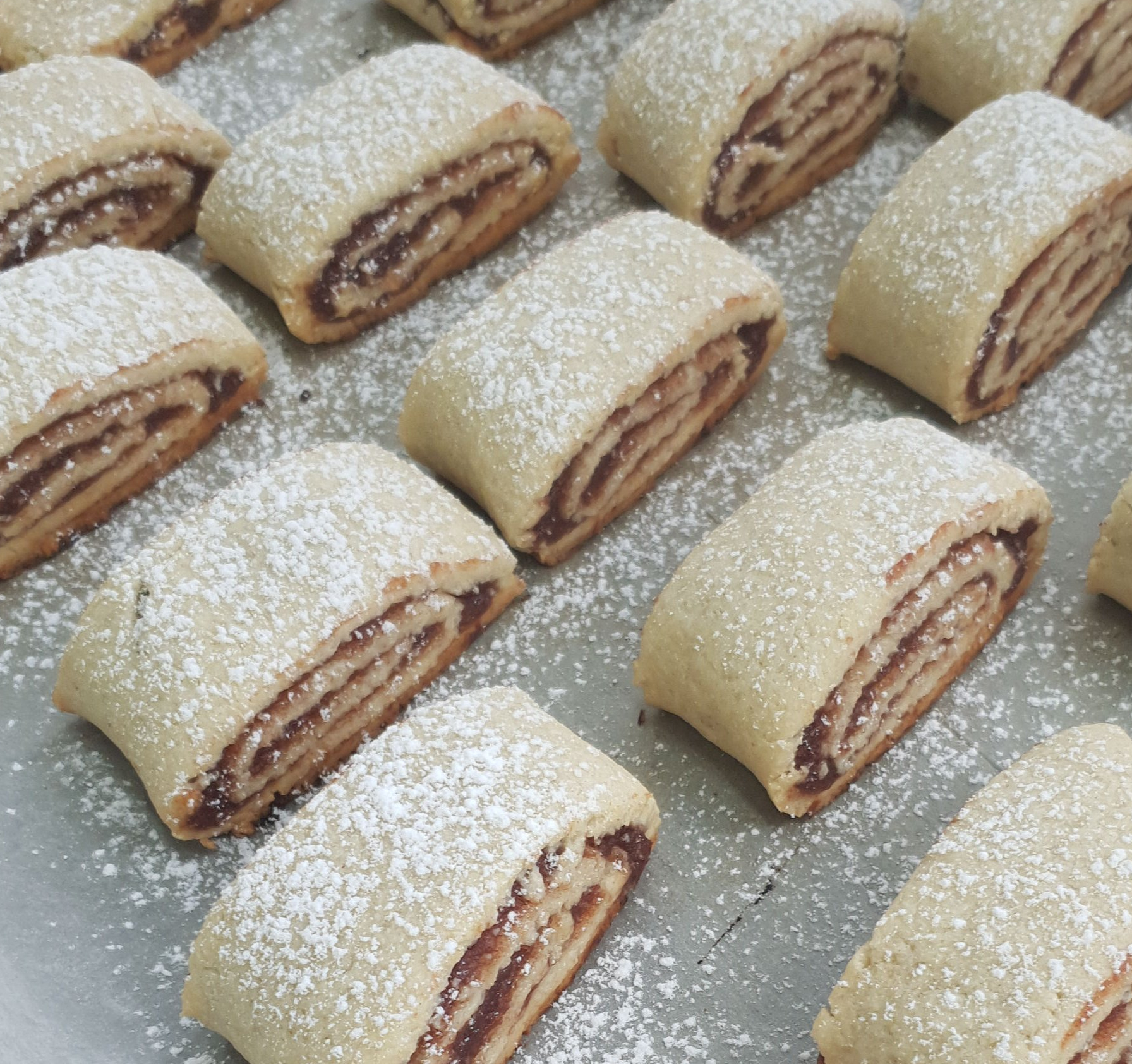 En général ces gateaux sont fourrés un peu comme les figolus mais moi je les fait en roulés vue que je ne me suis pas servi de noix dans ma préparation, c’est bien plus pratique.